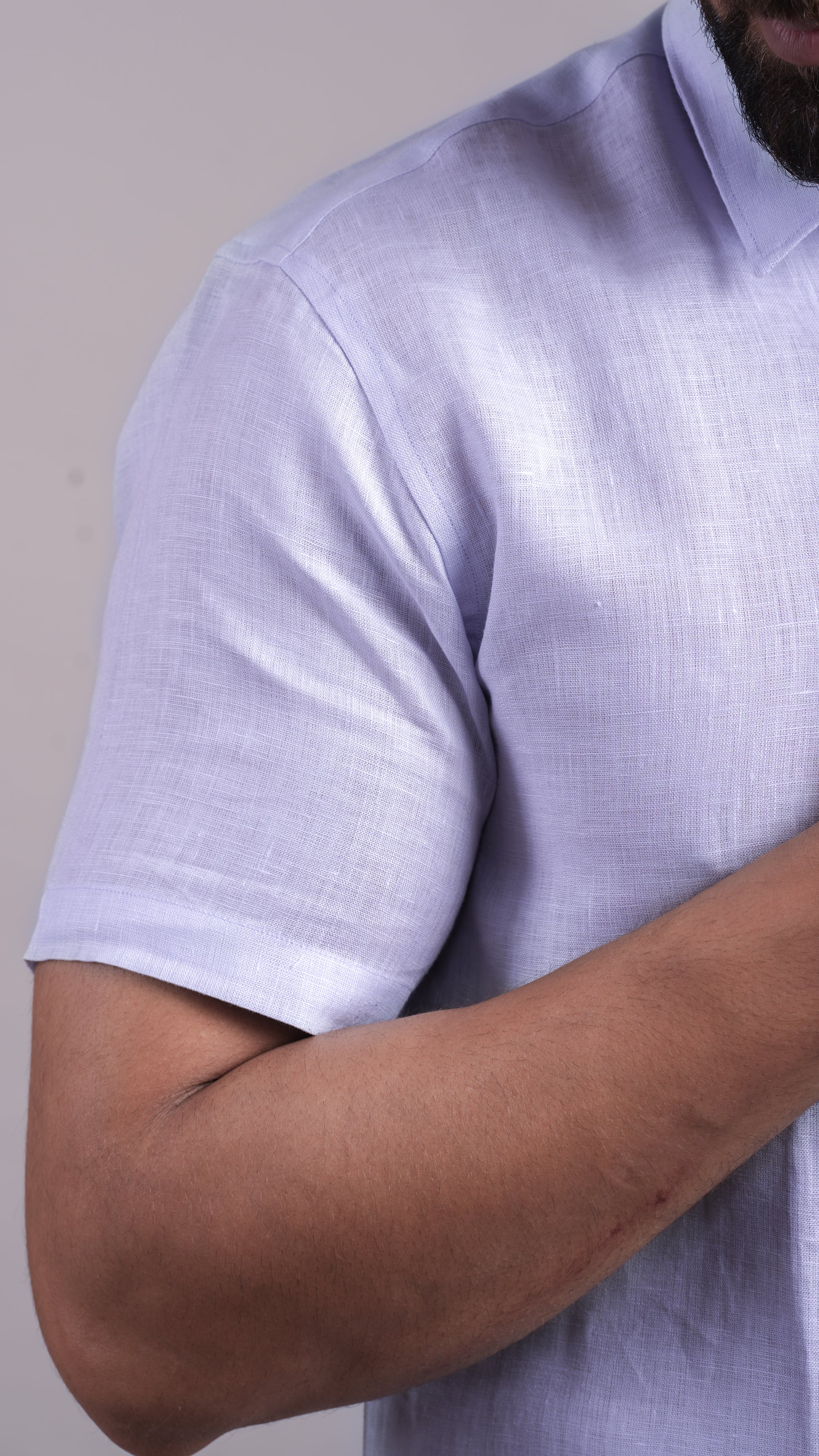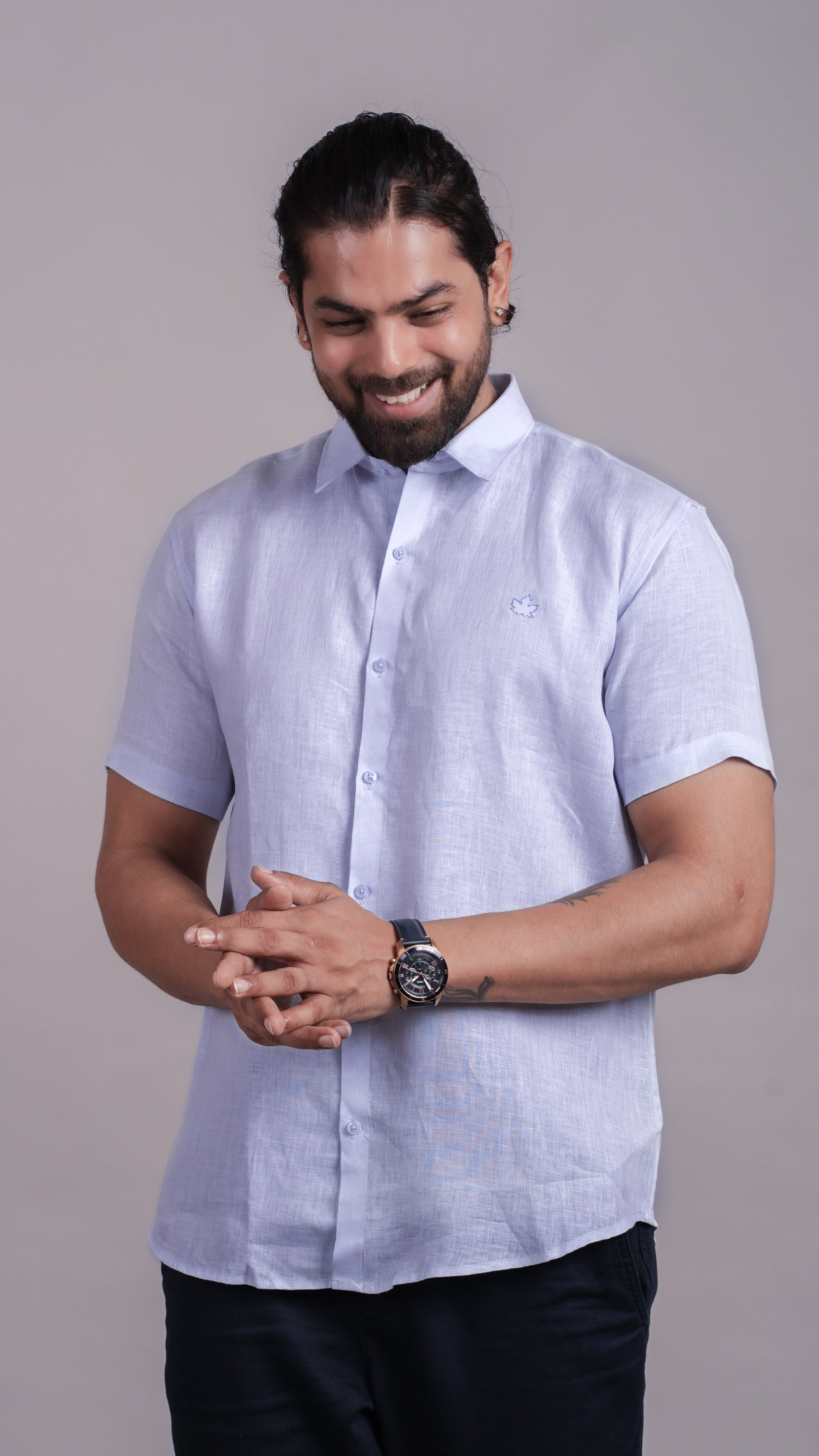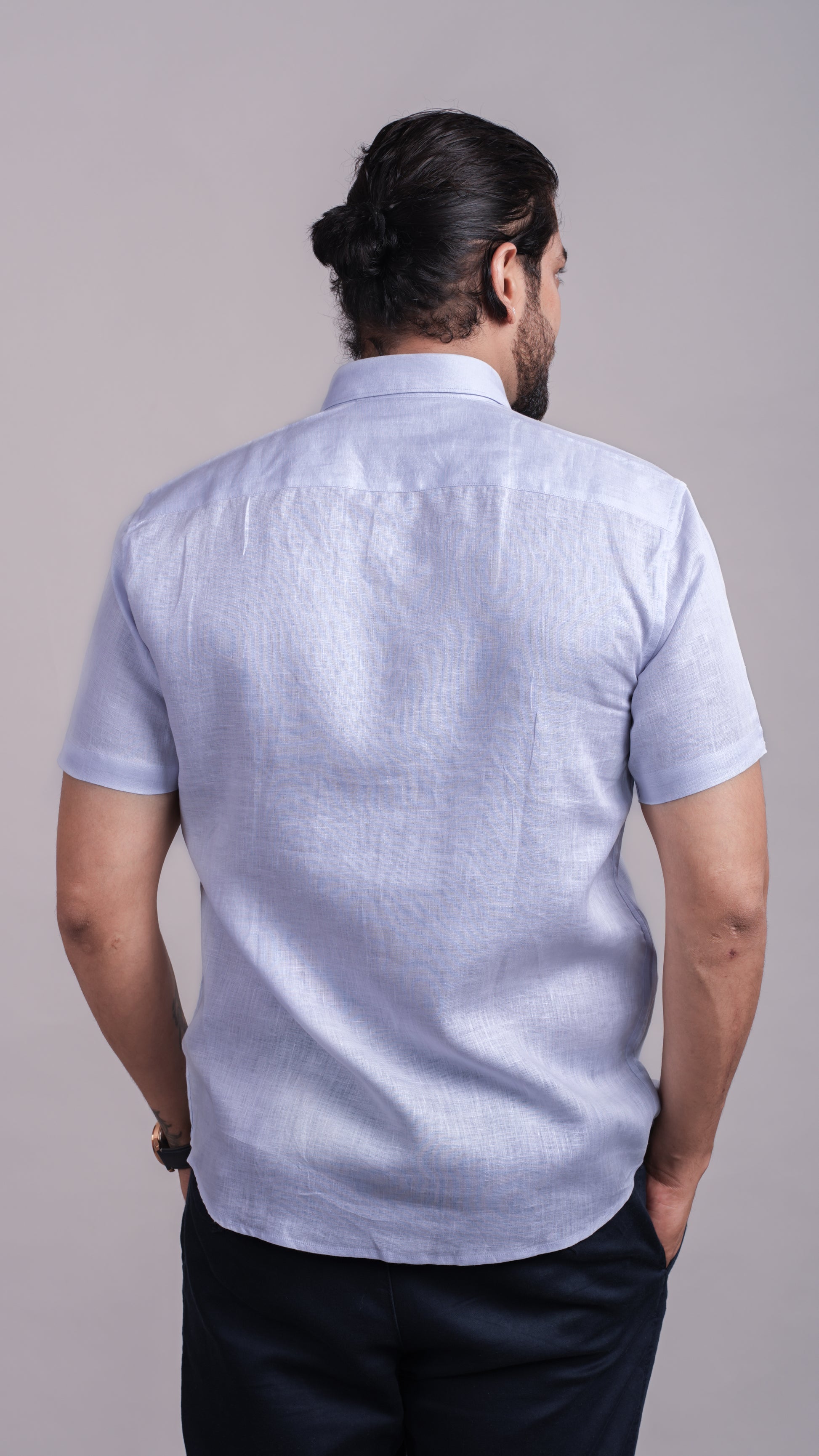 Light blue half-sleeve shirt, crisp and calming like sea air. Ideal for travel and everyday sophistication.