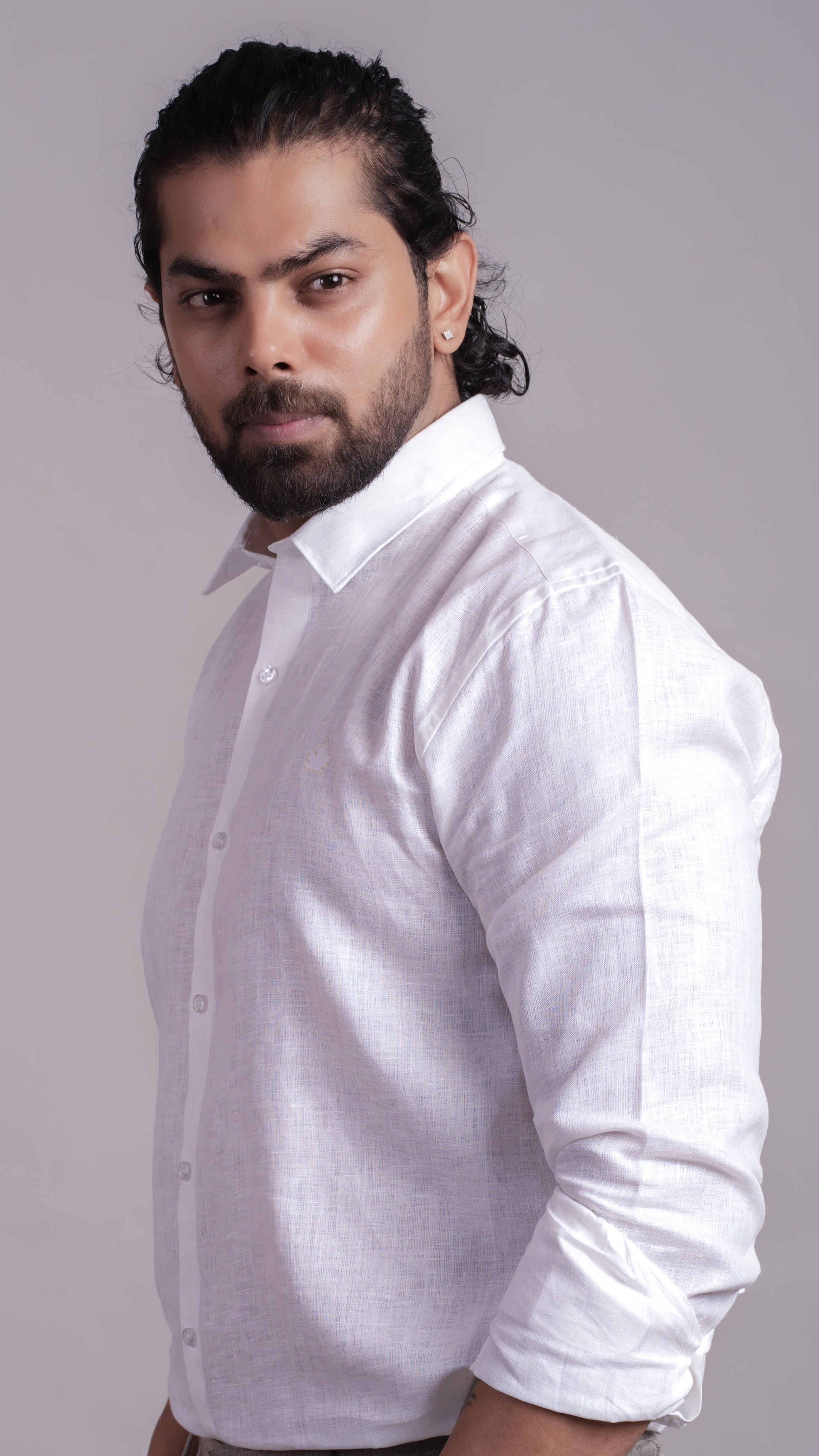 Classic white full-sleeve linen. Crisp, timeless, and essential for every modern wardrobe.