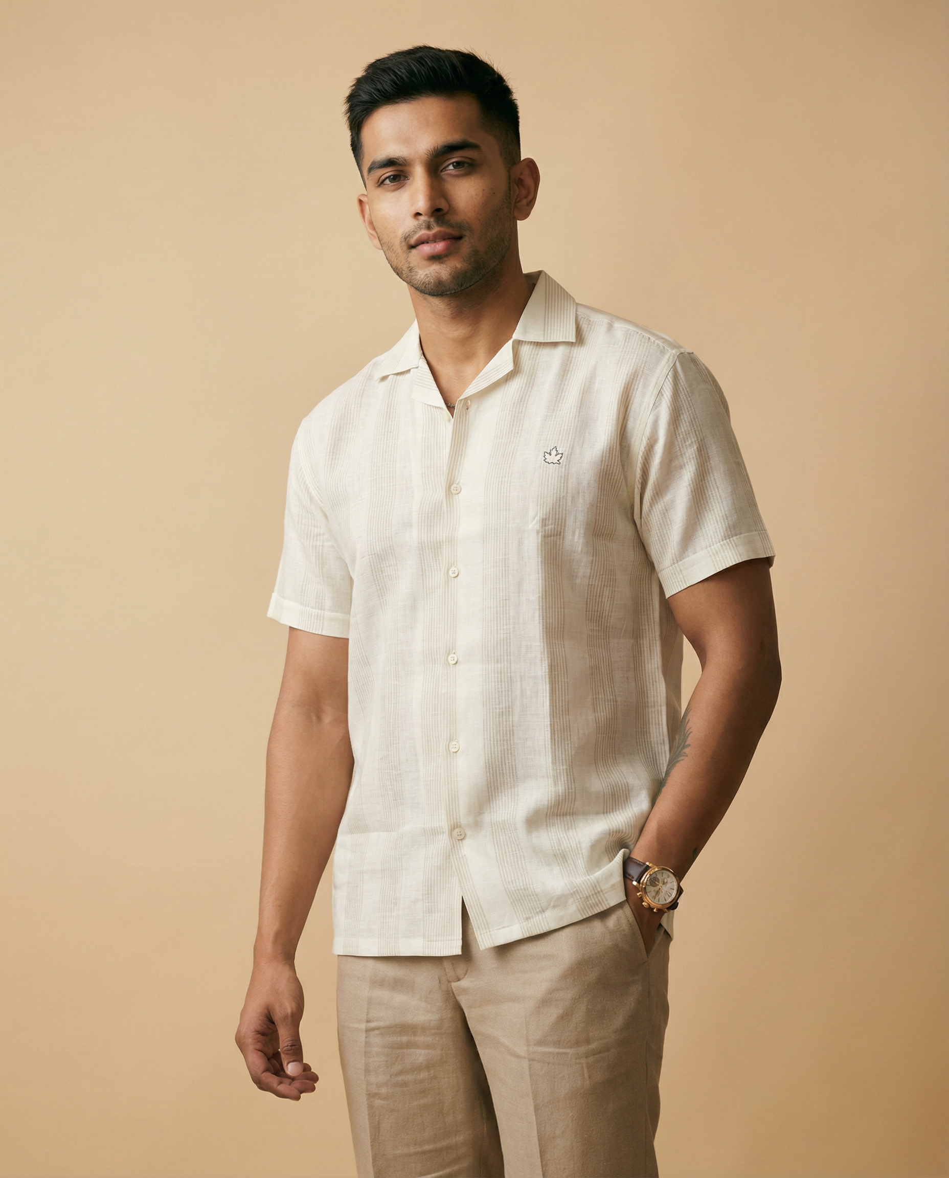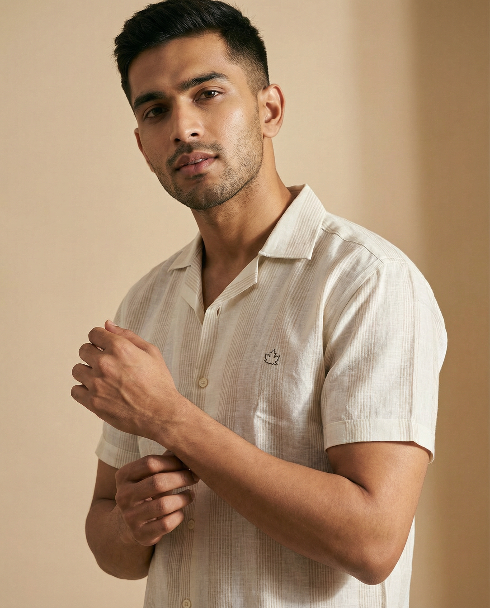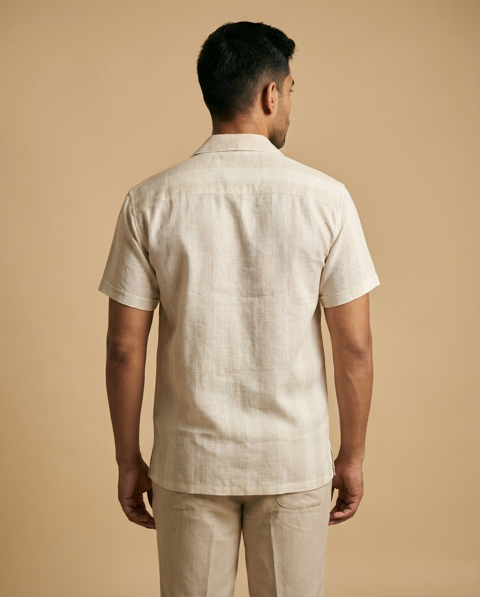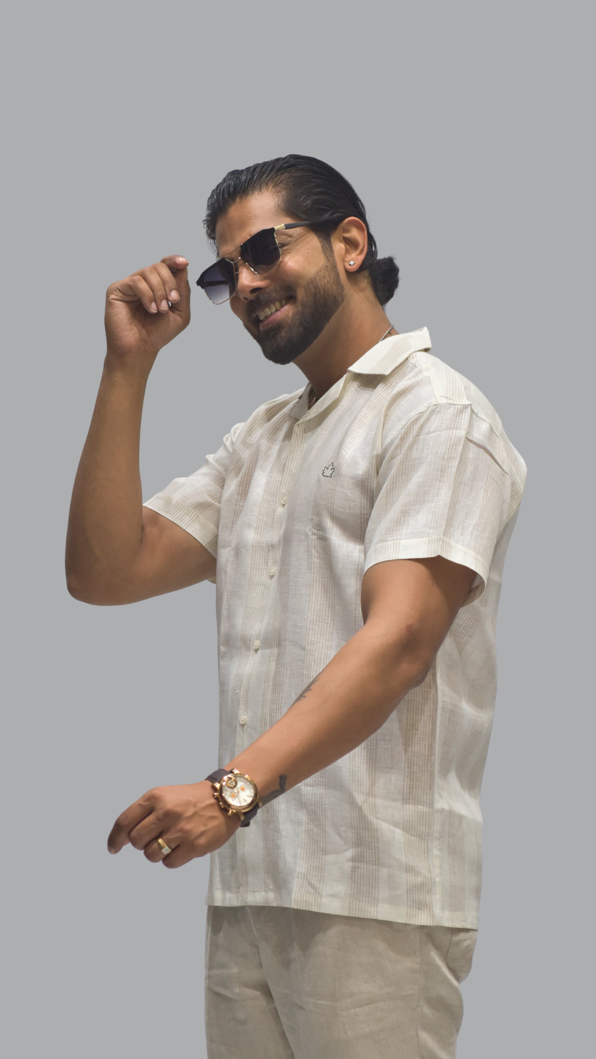 White matty striped cuban collar linen shirt. Clean, versatile, and effortlessly stylish.
