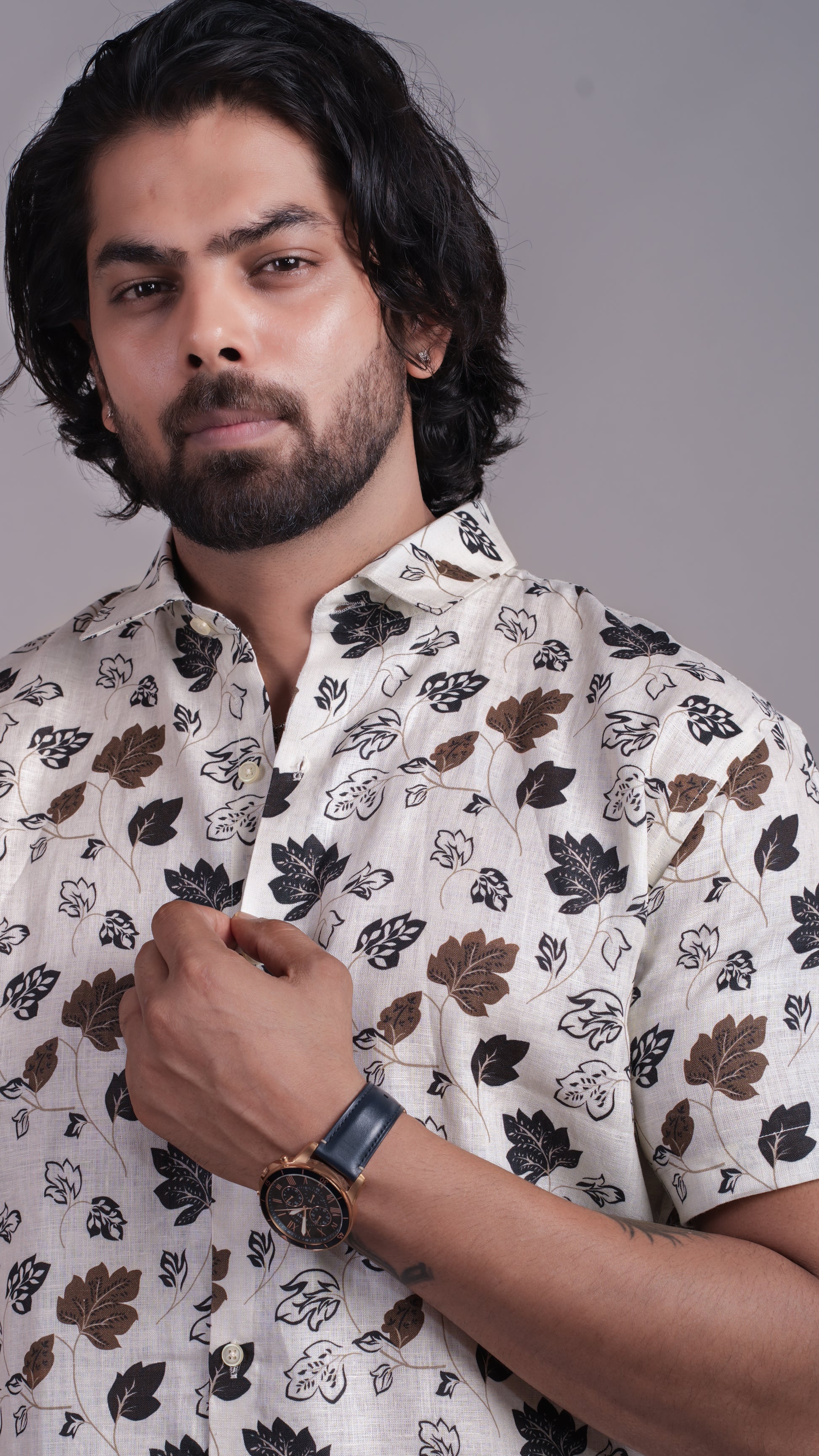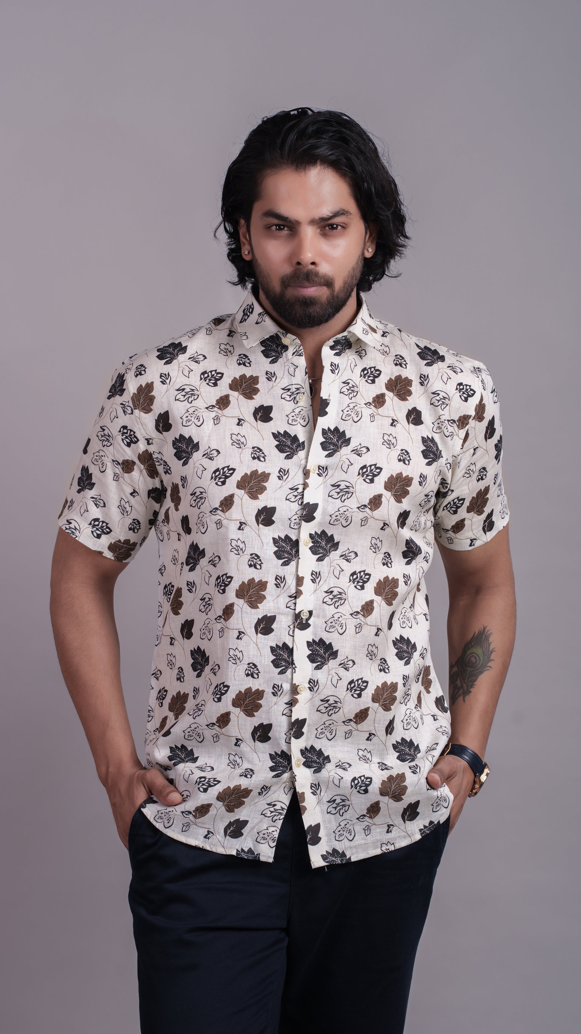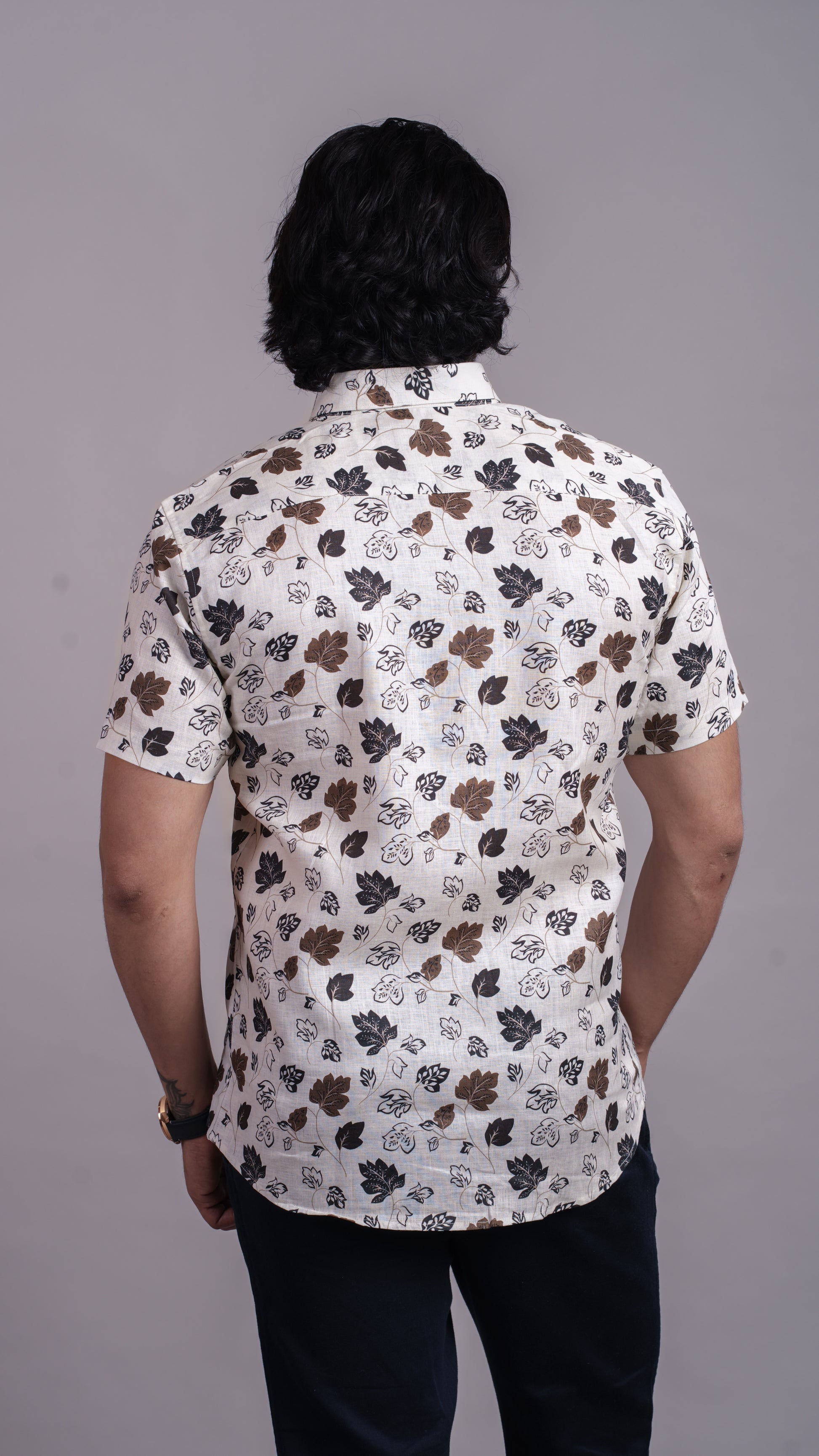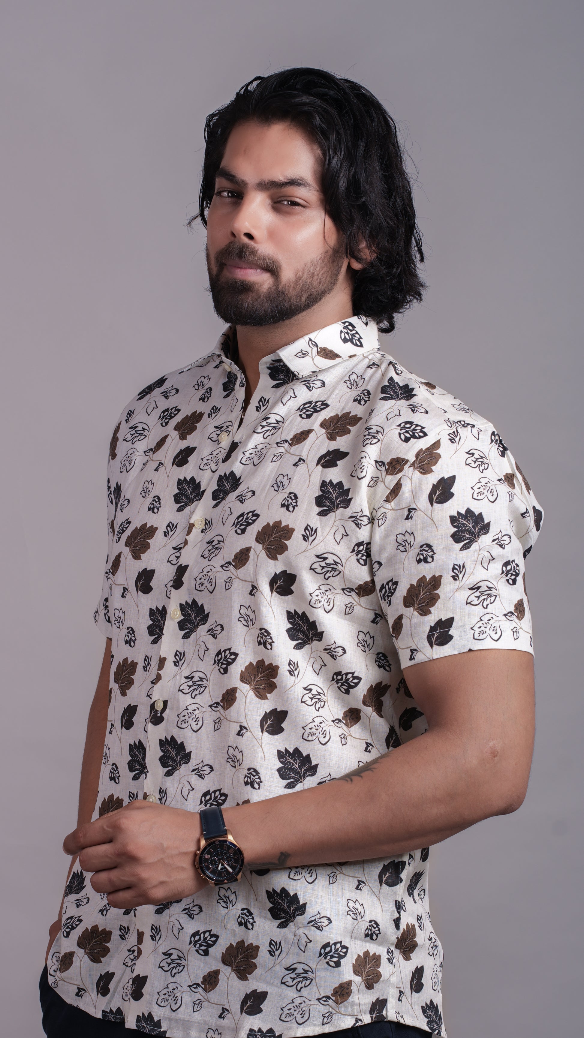 Leaf-inspired digital print shirt. Fresh and lively, echoing natural textures.
